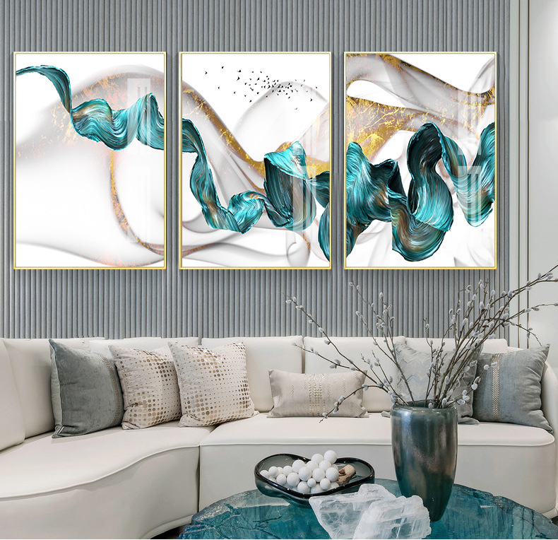 客厅装饰画沙发背景墙画三联画招财风水挂画新中式壁画山水画