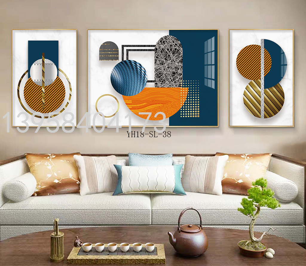 现代简约几何挂画抽象图片装饰画三联画晶瓷画风格装饰画京瓷画