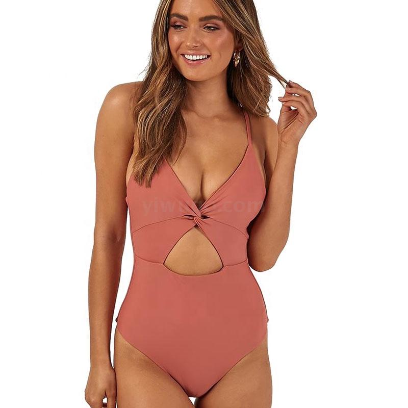 比基尼外贸欧美新款性感纯色露肚女士连体泳装锦纶品质厂家直销