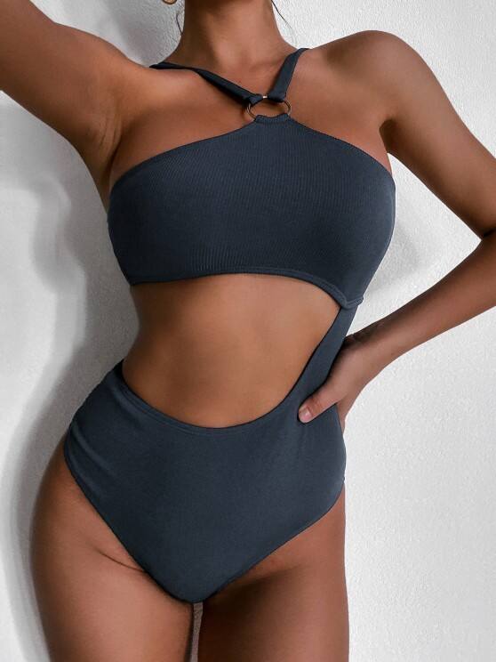 泳装外贸泳装欧美女士泳衣连体高腰系带比基尼纯色性感泳衣