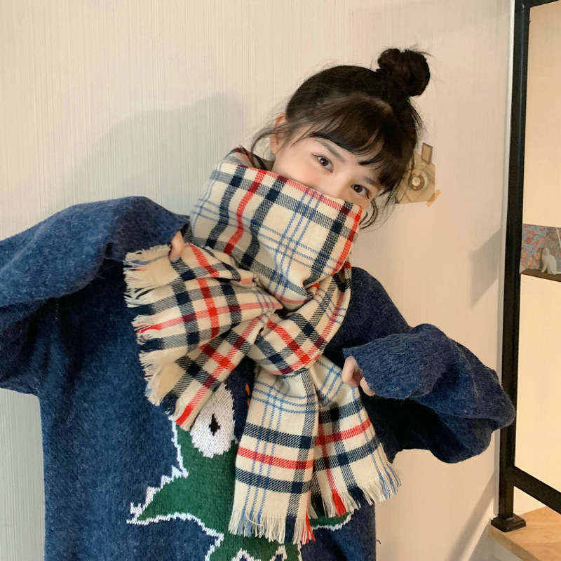 2020东大门新款英伦格子围巾女冬季韩版流苏仿羊绒披肩外搭围脖