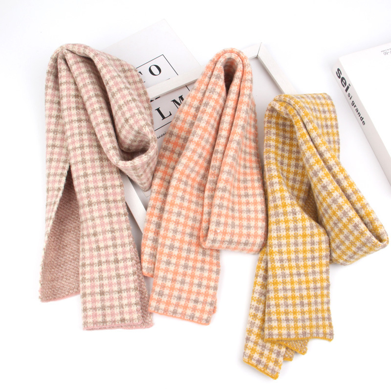 宝宝围巾秋冬保暖新款儿童格子毛线围巾舒适柔软男女童针织围脖潮