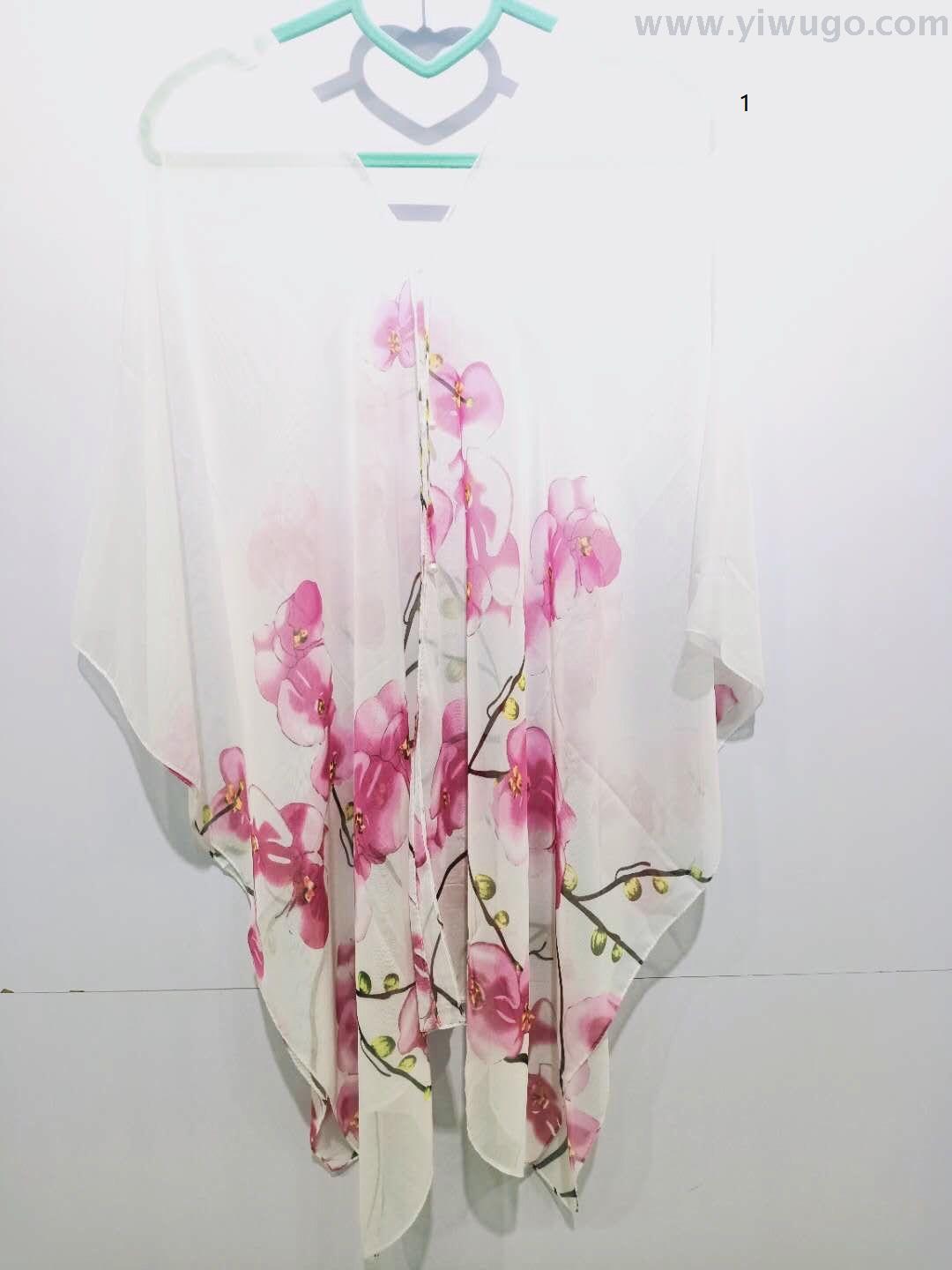 外贸夏季欧美新款防晒沙滩衣雪纺印花比基尼外搭珍珠扣巾厂家直销
