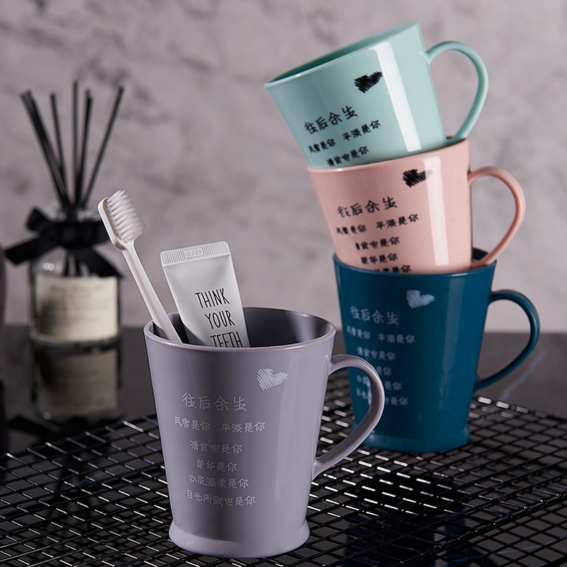 厂家直供创意文字喝水杯 大杯口漱口牙刷杯 多色磨砂手柄刷牙杯子