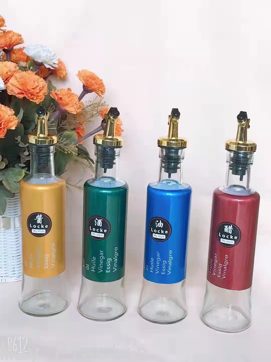 新款炫彩金盖银盖玻璃油瓶香油瓶不锈钢油壶酱油瓶醋瓶酒瓶调味瓶