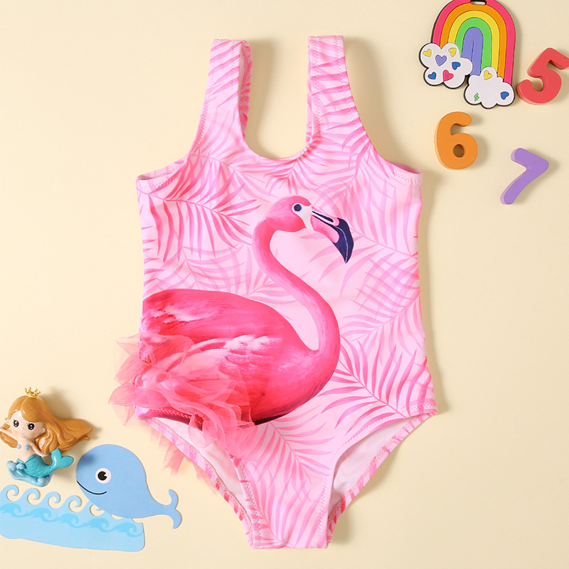 新款欧美连体泳衣女童火烈鸟卡通图案游泳衣泳衣女