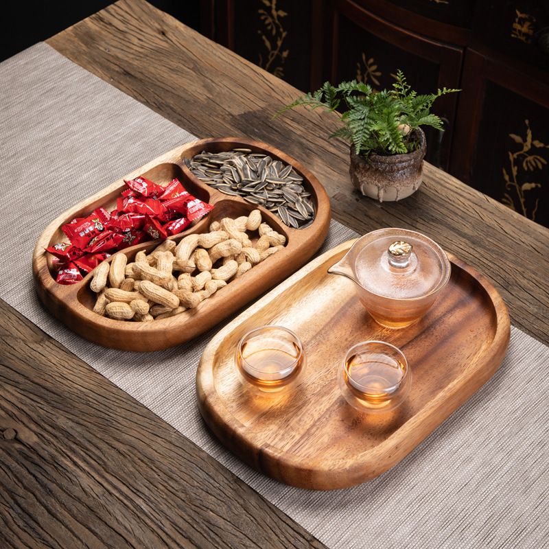 木质果盆果盘零食盘简约现代干果盘分格创意客厅糖果盘家用水果盘