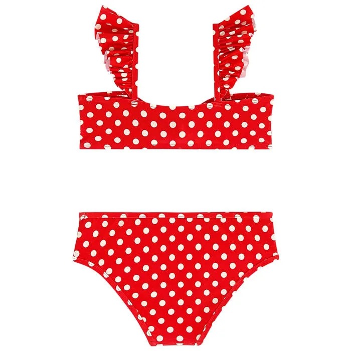女童宝宝儿童分体红色白色波点亲子泳装游泳衣