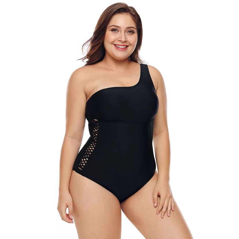 比基尼外贸新款性感单肩纯色大码欧码女连体泳衣锦纶品质厂家直销