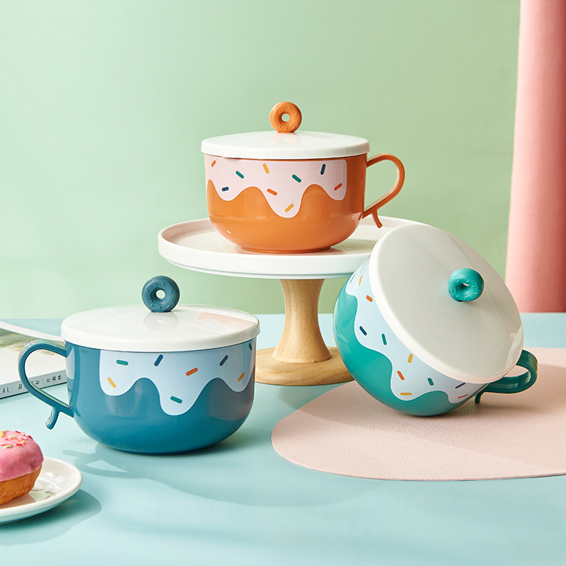 甜甜圈不锈钢带盖泡面碗 防烫带把手保温饭盒简约儿童水果沙拉碗
