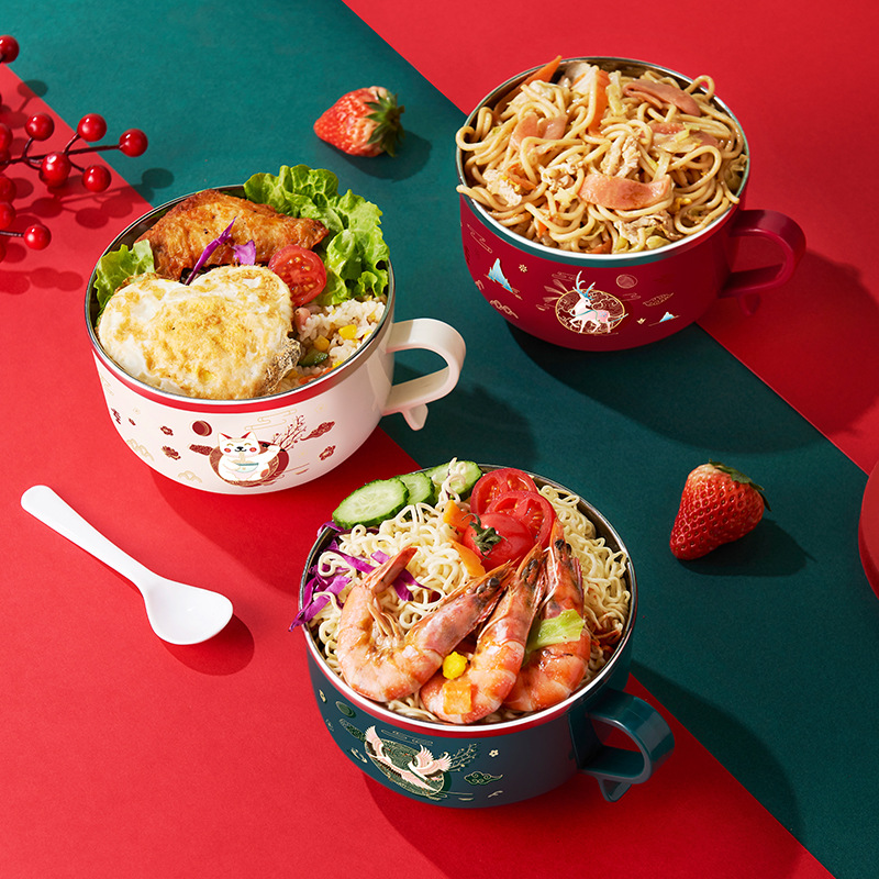 新款不锈钢带盖泡面碗 日式卡通多功能学生寝室带饭碗双层泡面碗