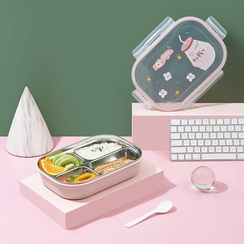 卡通儿童分格饭盒 学生上班族不锈钢便携便当盒 方形保温快餐盒