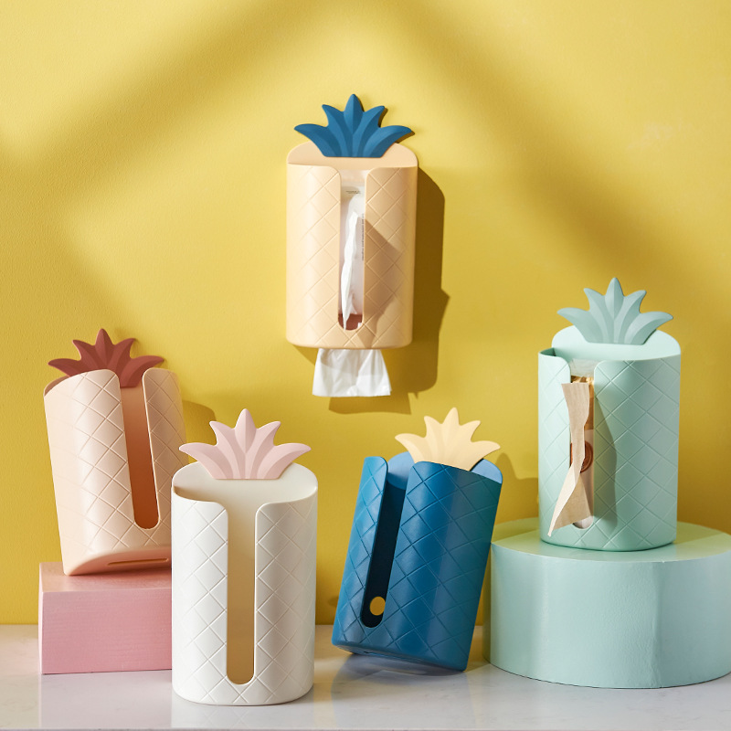 壁挂式纸巾盒无痕免打孔橱柜厨房创意菠萝造型卫生间洗脸巾收纳盒
