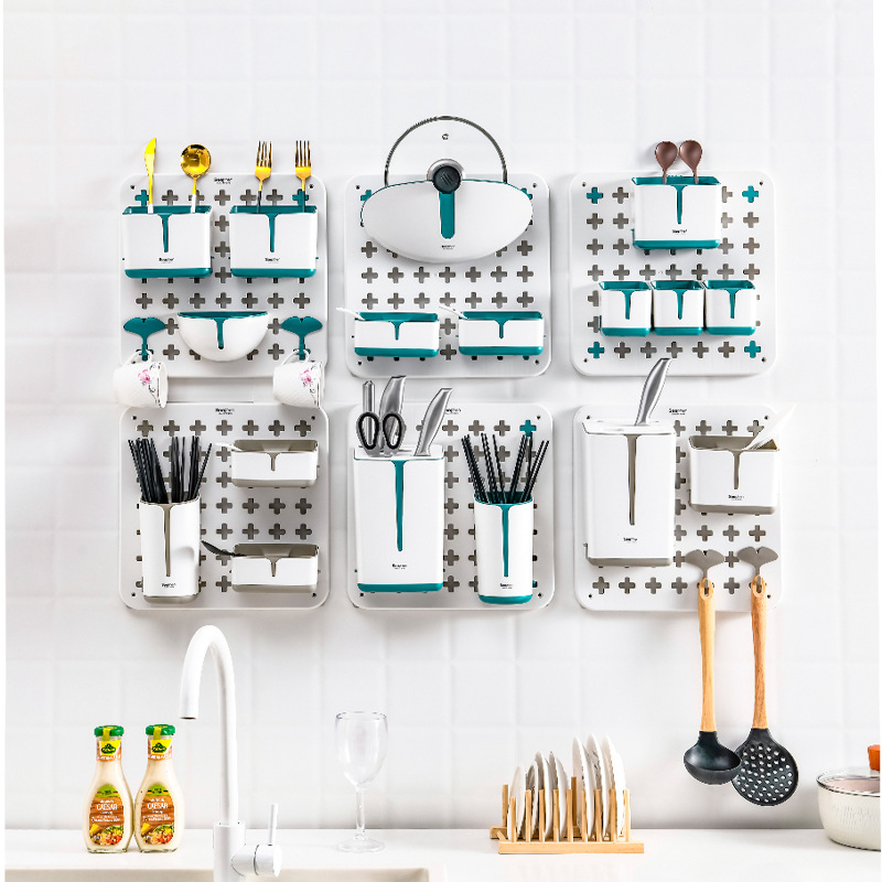 创意网红洞洞板置物架免打孔收纳架厨房调料架沥水刀架锅盖架挂钩
