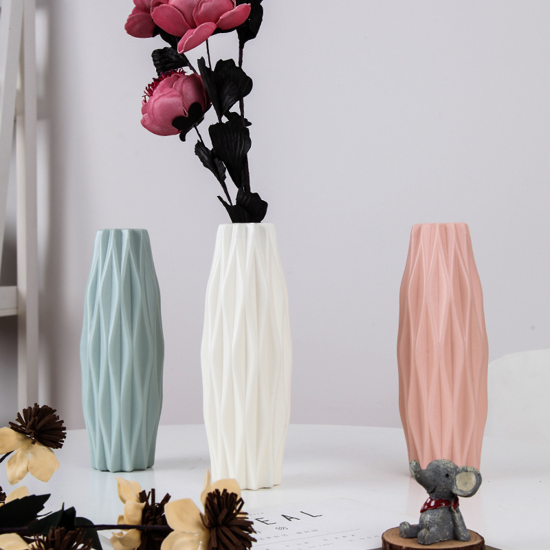 创意新品耐摔PE花瓶 圆口塑料花瓶 简约北欧色塑料花瓶