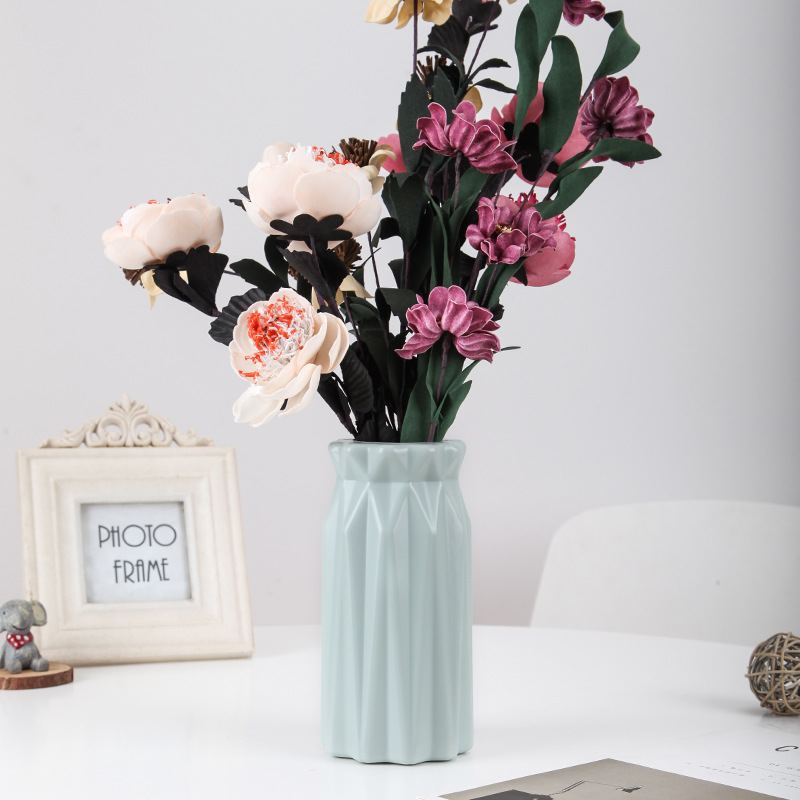 创意简约北欧色塑料花瓶 耐摔PE水培绿萝植物塑料花客厅装饰摆件