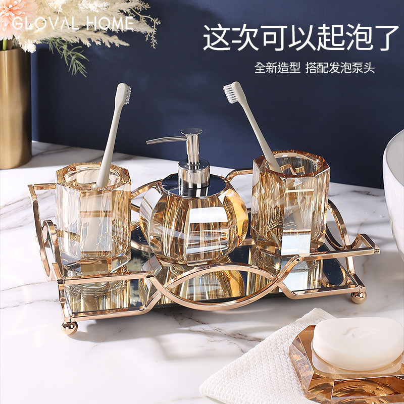 轻奢水晶洗漱套装高档皂盒沐浴露洗手液分装瓶罐子装饰摆件