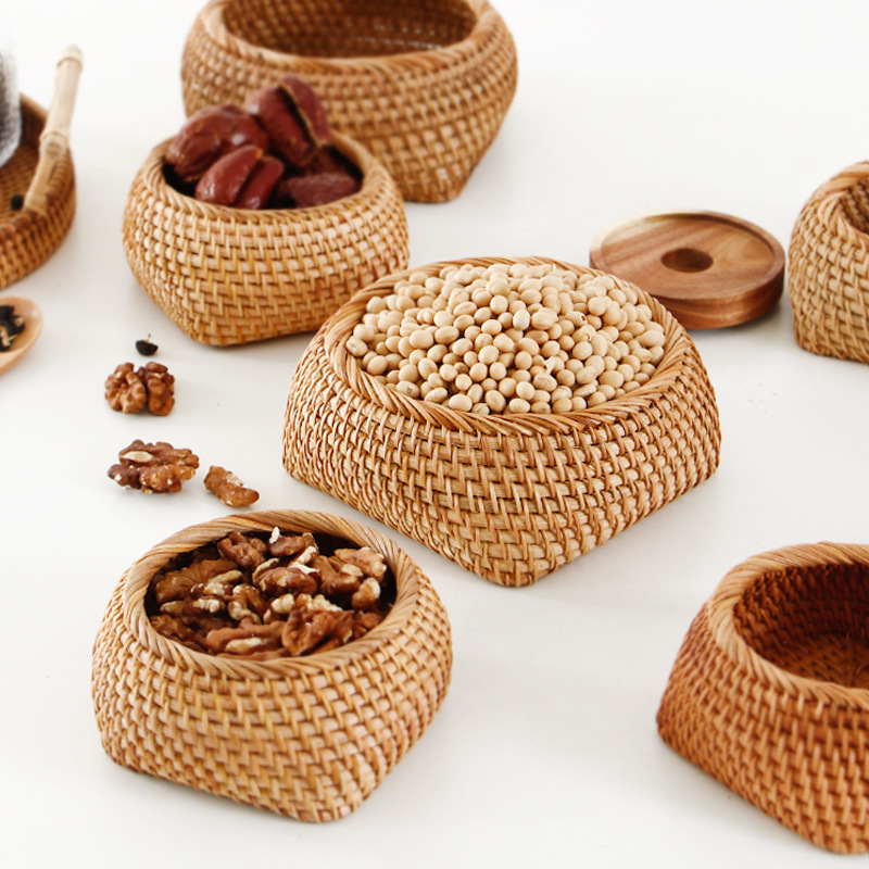 越南秋藤编织干果盘 家用草编茶叶盒 点心收纳盒桌面零食果篮子