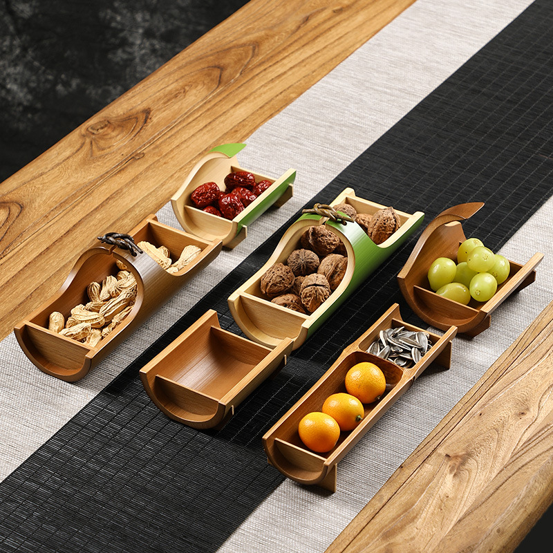 竹制茶点盘 日式和风零食水果点心盘 创意家用收纳盒 仿古干果盘