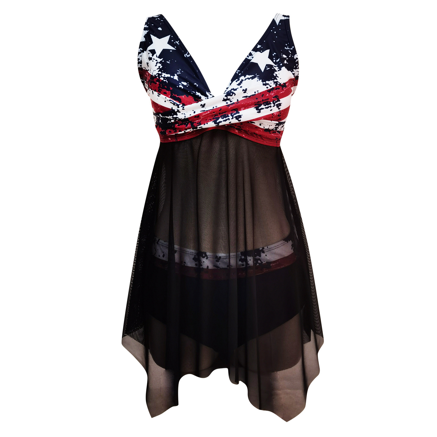 2021年欧美新款数码印花纱裙大码高腰分体两件套女泳衣加肥加大