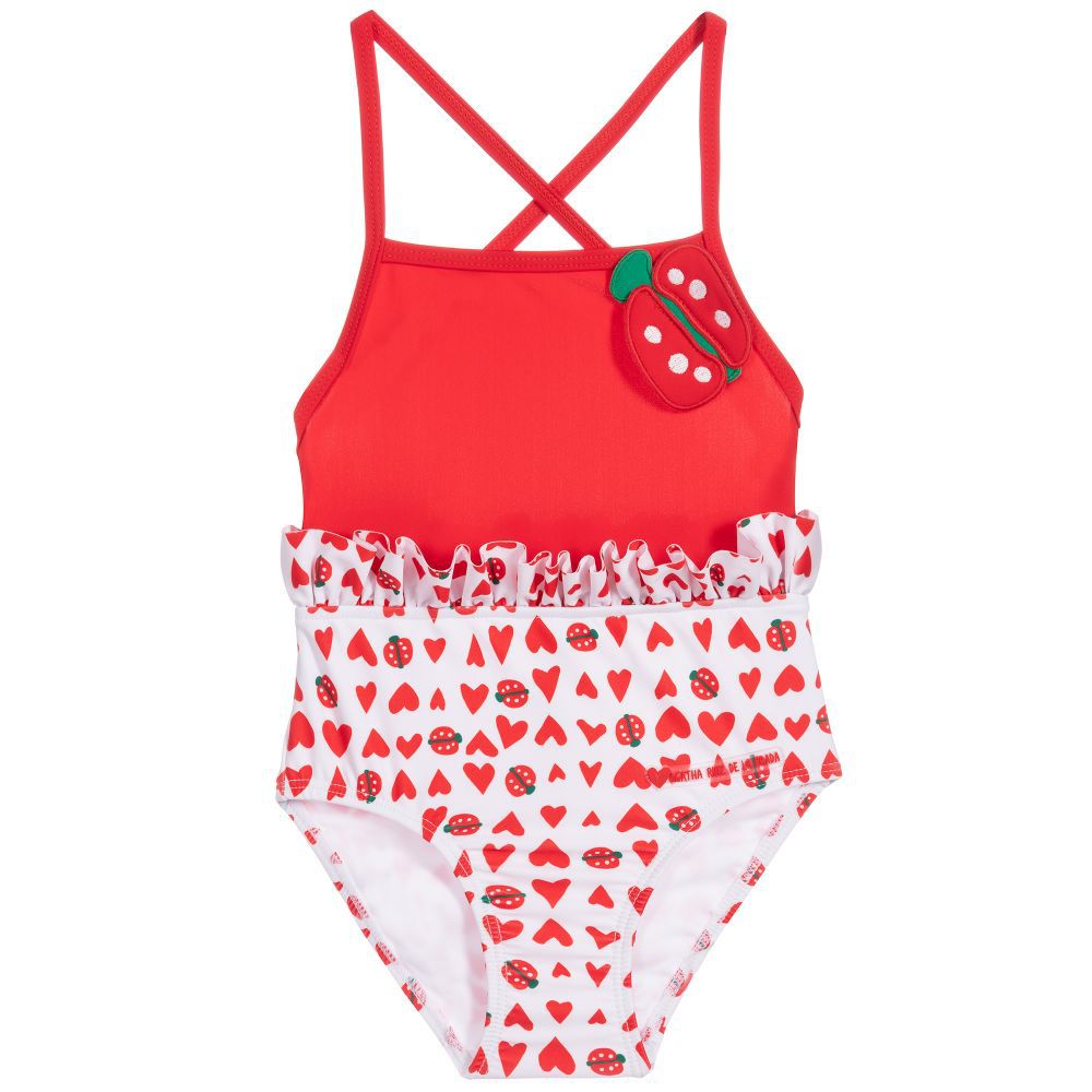 外贸儿童女童泳衣草莓印花连体游泳衣