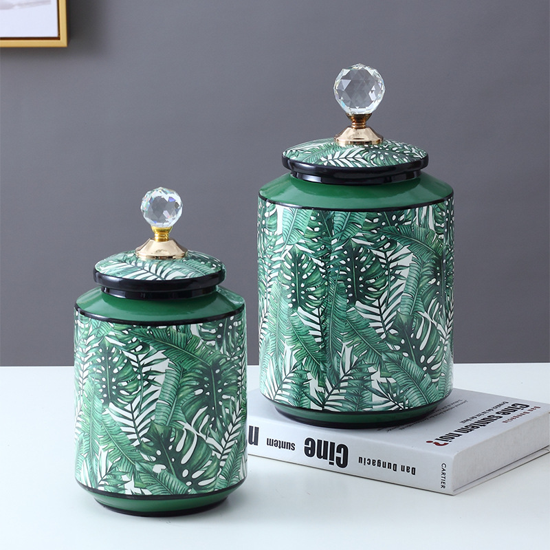 北欧家居水晶盖陶瓷罐软装玄关客厅电视柜装饰罐