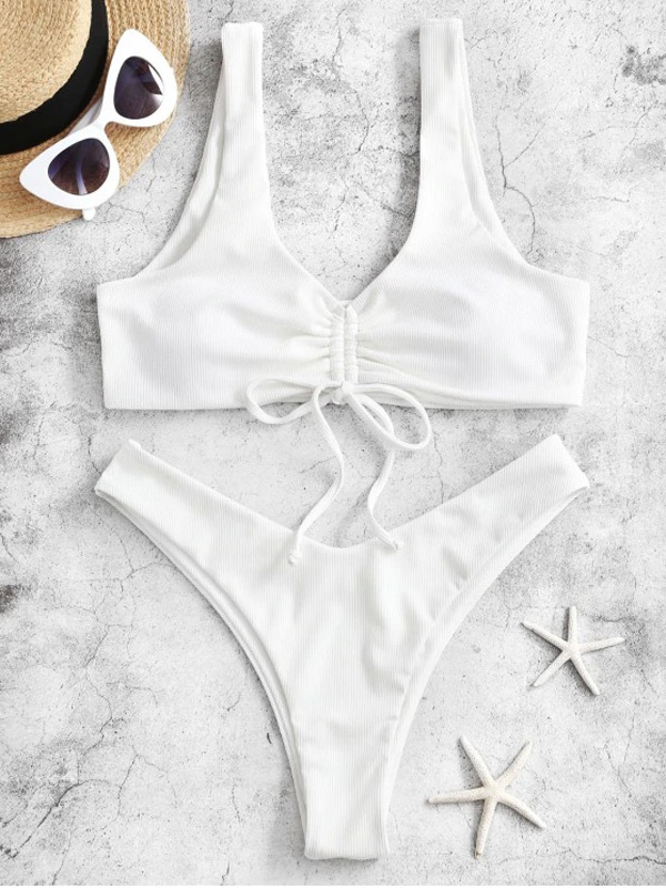 泳装欧美女士泳装纯色分体泳衣性感丁字裤泳衣比基尼泳装