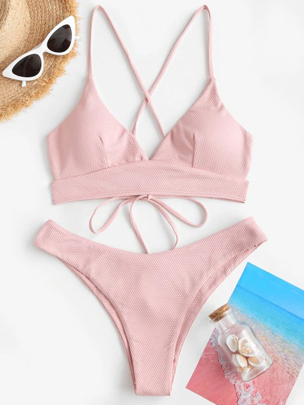 泳装欧美泳装泳衣分体泳衣编绳性感泳衣比基尼纯色泳装