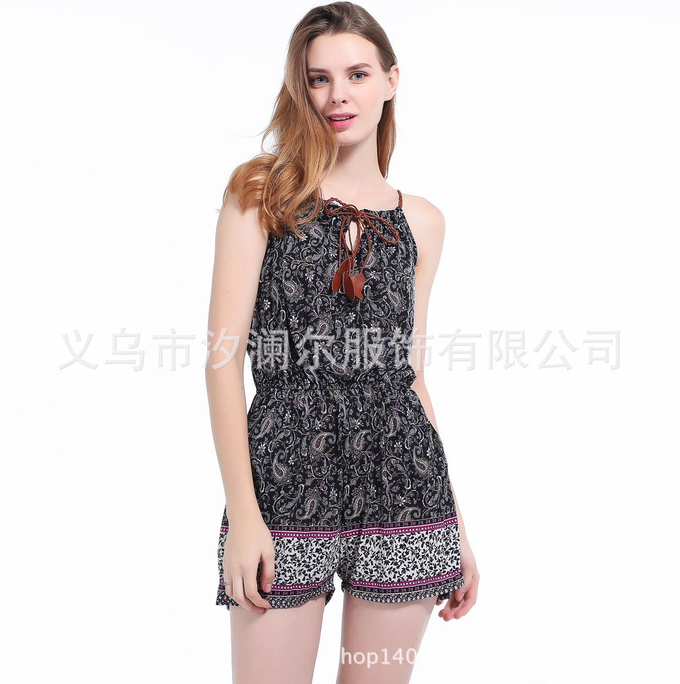 沙滩裤外贸欧美2017新款腰果印花一体裤夏季 女装爆款沙滩热裤