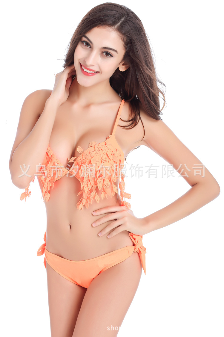 比基尼 性感欧美镂空树叶荧光系女式分体比基尼泳装E5030外贸泳衣