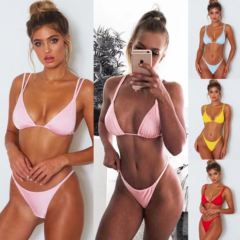 比基尼外贸新款性感纯色上托三角女士分体泳衣锦纶品质厂家直销