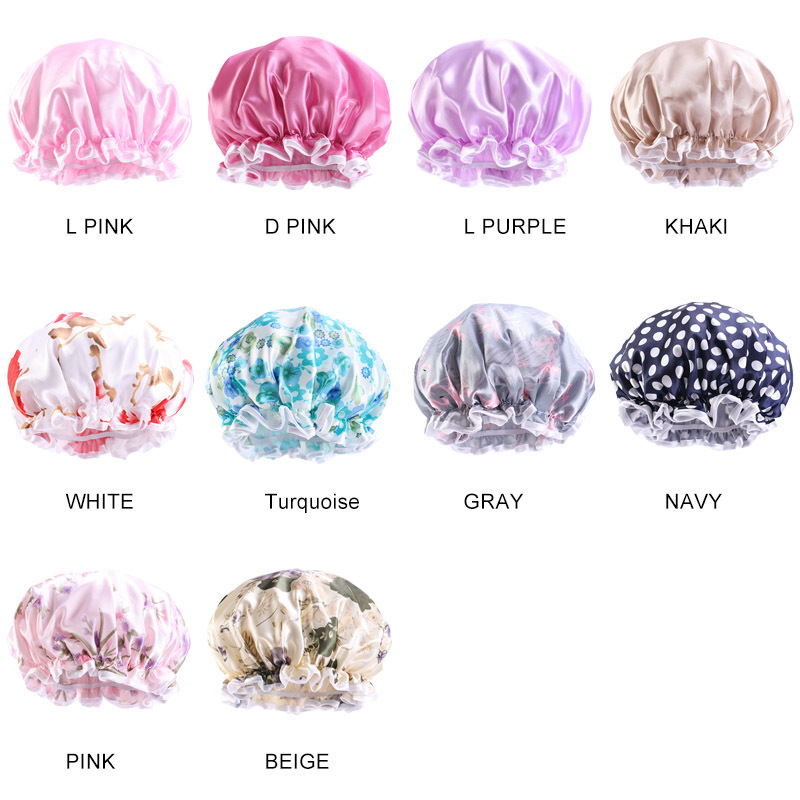 双层色丁布防水浴帽加厚成人女士印花沐浴帽 防油烟帽 TJM-453