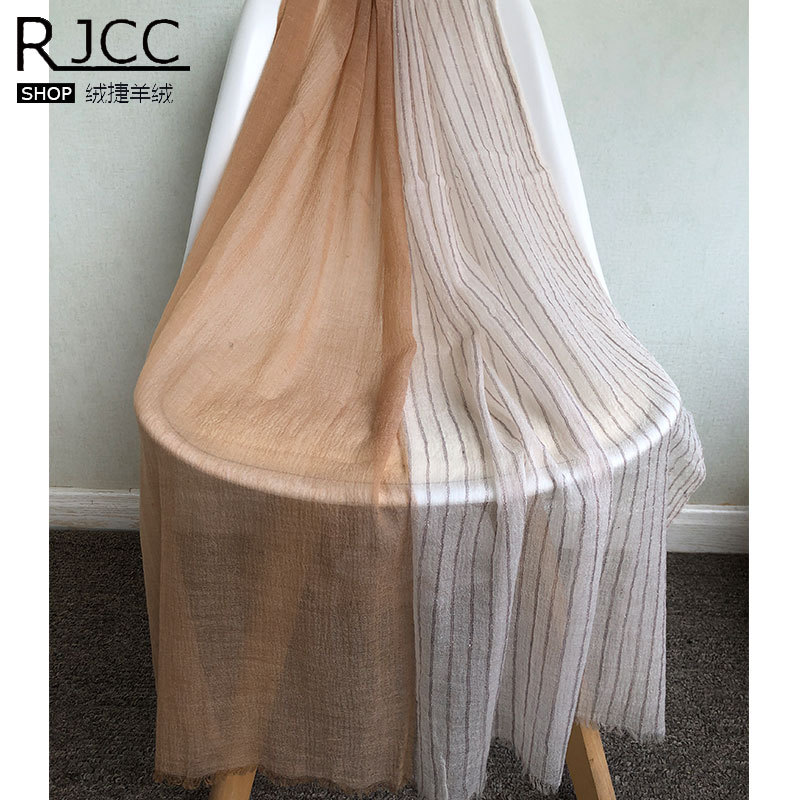 rjcc绒捷新品羔毛条纹拼色金丝毛须女士青年逛街游玩冬季保暖围巾