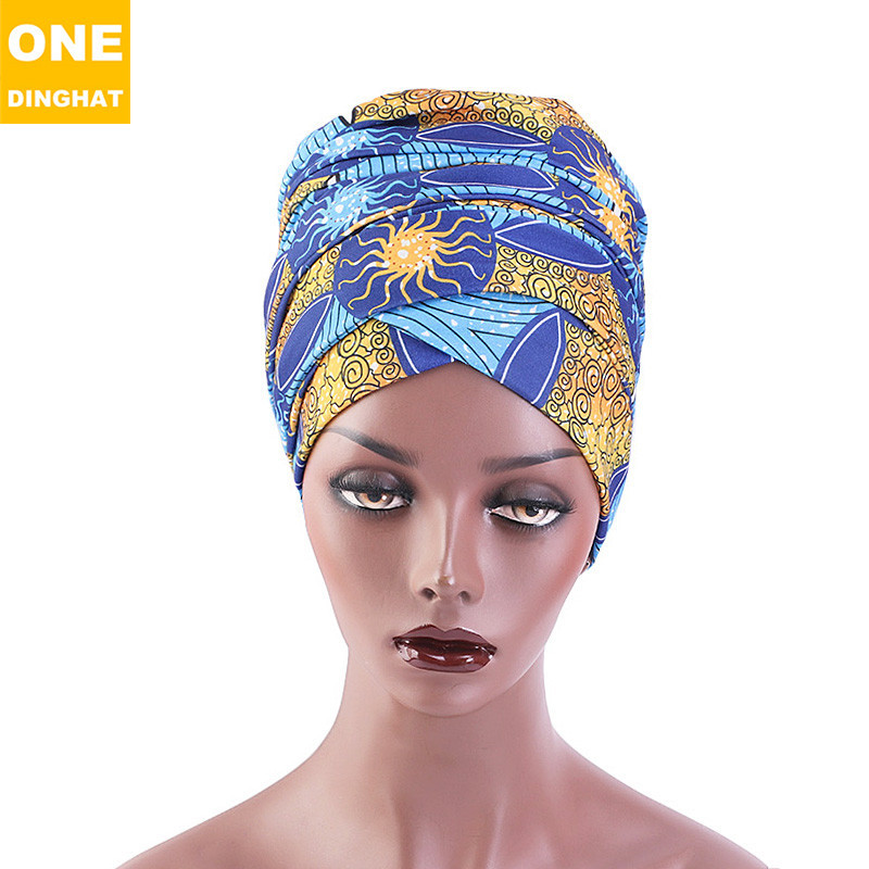 亚马逊热卖非洲印花长尾裹头巾 围巾裹头帽 弹力棉民族帽子