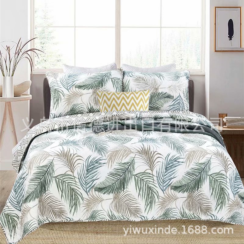 欧美风纯棉大尺寸床盖绗缝三件套全棉砂洗夏凉被夹棉床单外贸出口