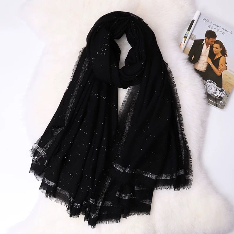 羊毛羊绒混纺围巾韩版超大百搭双用披肩璀璨星空珠片闪亮工艺仙女