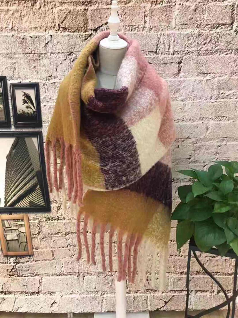 炫彩格子网咖保暖装备缤纷色彩毛线围巾御寒专属披肩围脖