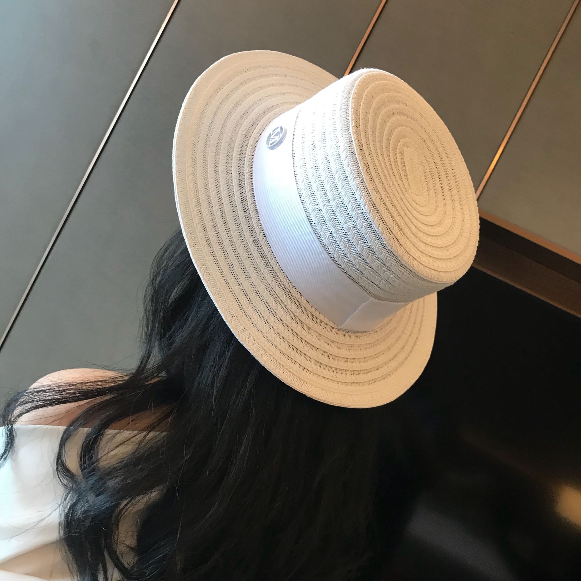 网红安娜呛口小辣椒同款字母草帽草编女沙滩遮阳平顶小礼帽子女潮