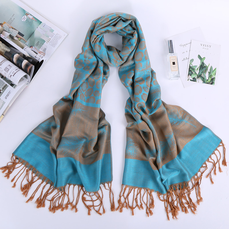韩范围巾女春夏棉质棉麻围巾绿色树叶纱巾海边装饰沙滩巾防晒披肩