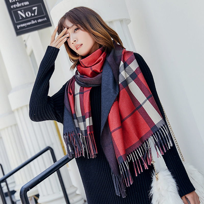 秋冬新品欧美长款英伦格子围巾两用保暖百搭女士披肩渐变色