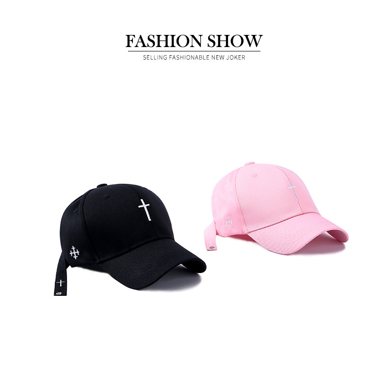新款十字架刺绣棒球帽 韩版个性遮阳时尚简约鸭舌帽子