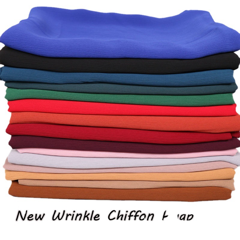 马来西亚新款褶皱女士长巾 跨境自然皱单色珍珠雪纺纱巾 YW72