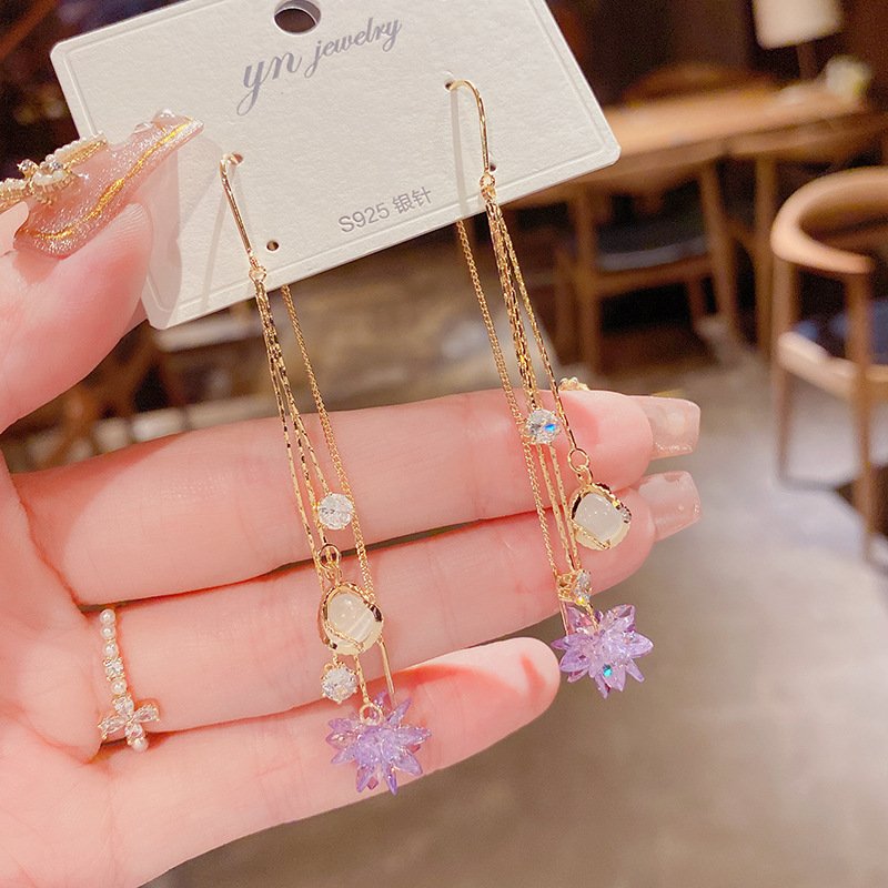 紫色冰花耳环女长款猫眼石高级感耳饰气质流苏日韩新款潮防丢耳线