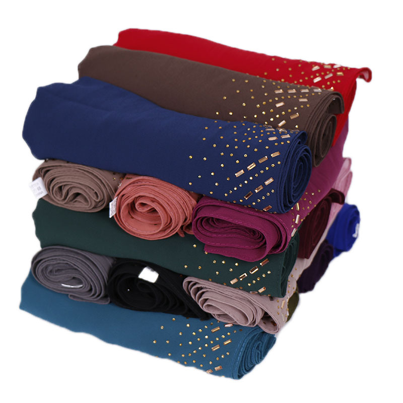 外贸春秋新款水钻珍珠雪纺妇女长巾 纯色马来西亚产长款围巾 YW80