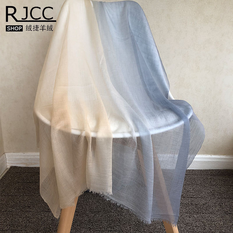 薄款300支羊绒披肩女春秋夏季渐变戒指绒围巾两用长款