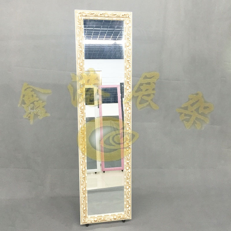 象牙白实木框试衣镜 普通店面用全身镜欧式落地穿衣镜