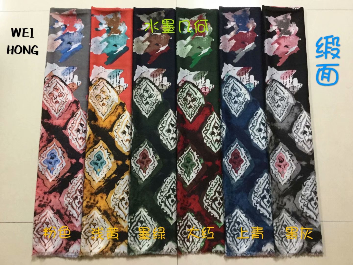 32支缎面水墨几何印花围巾防晒披肩头巾