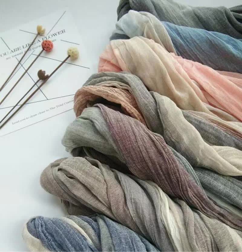 棉麻手绘过渡色休闲围巾欧美日韩流行围巾纯正天然材质脏染纱巾