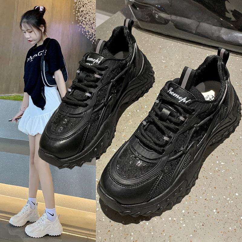 运动鞋女厚底韩版时尚单鞋2021秋季新款休闲网面跑步鞋潮流鞋子女