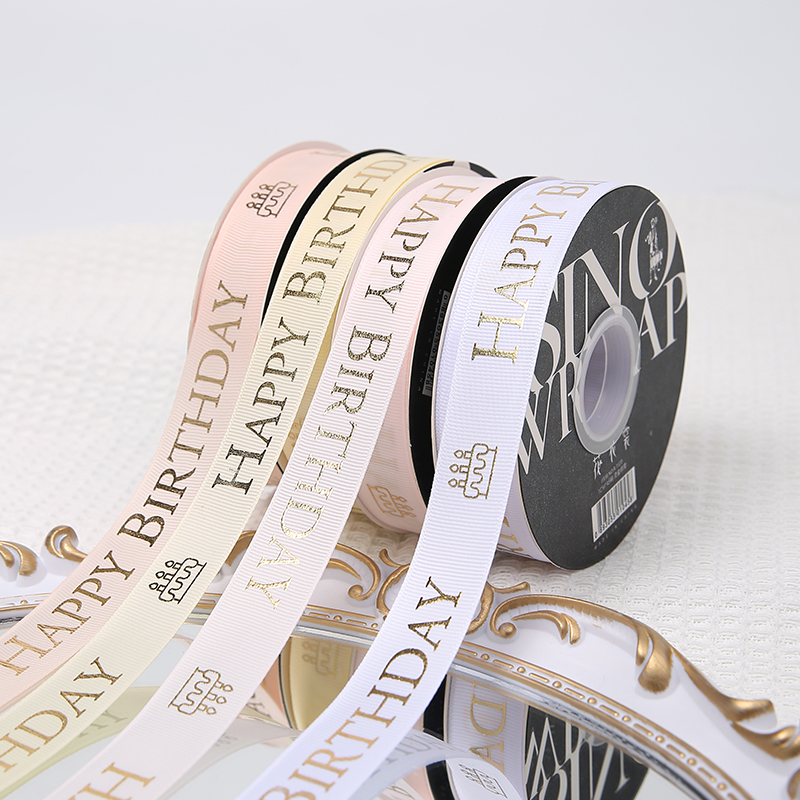 2.5cm生日快乐英文烫金带花束礼品装饰包装缎带蛋糕烘焙彩带